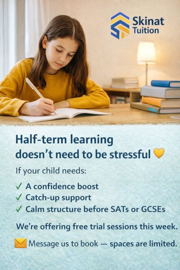 At Skinat Tuition, every lesson is delivered by a trained UK teacher and follows a structured plan that focuses on progress, confidence and long-term understanding. Our approach is calm, supportive and designed to meet children exactly where they are, whether they need to catch up, stretch further, or prepare for key assessments.